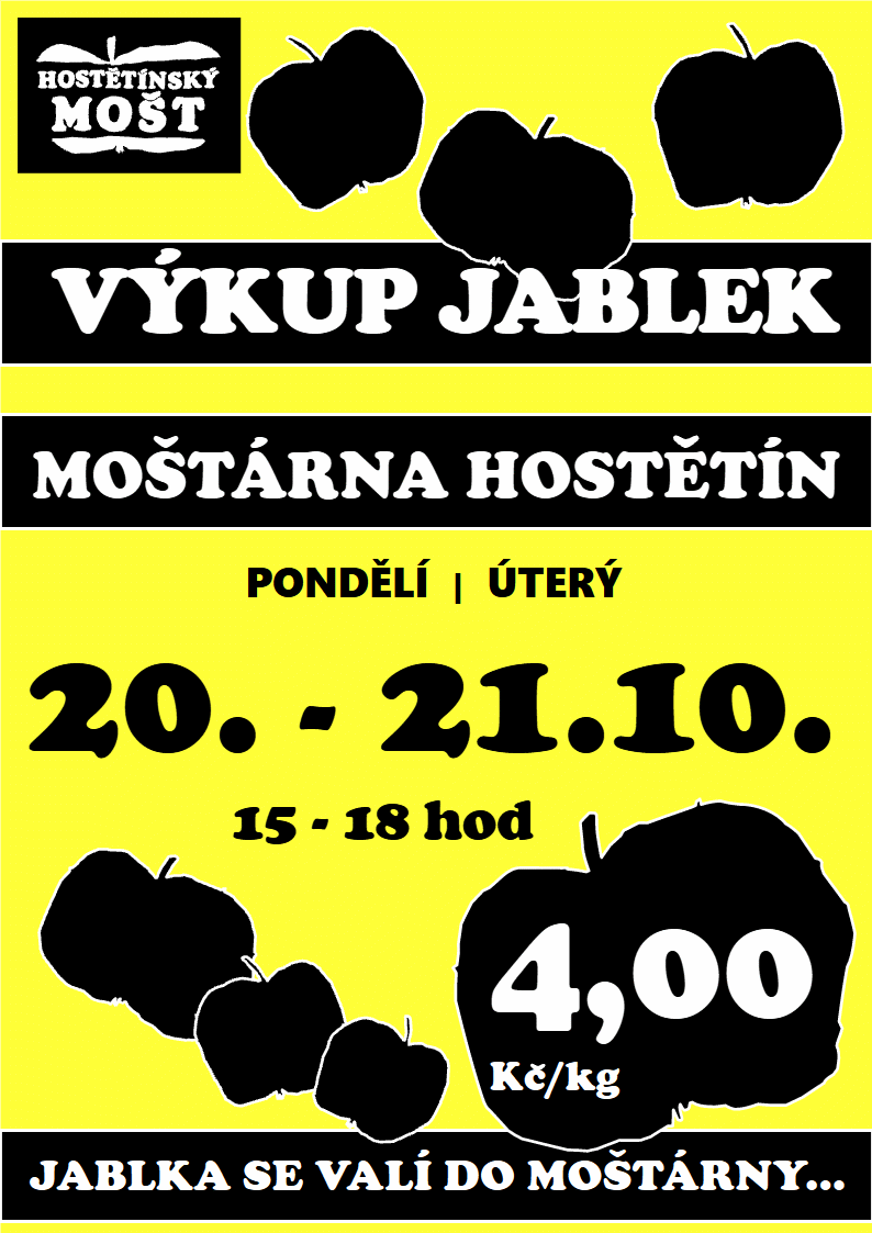 Moštárna v Hostětíně vykupuje v pondělí 20.10. a v úterý 21.10.