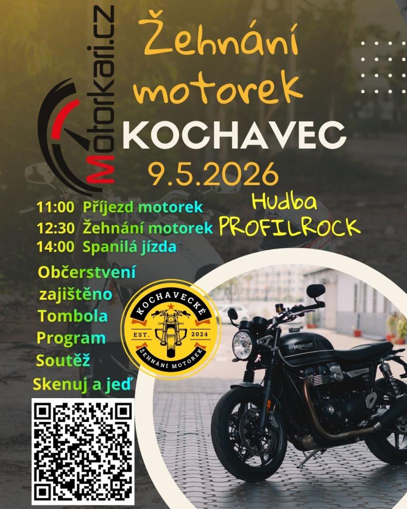 9. května se uskuteční na Kochavci Žehnání motorek. Akce začne v 11:00 příjezdem motorek a hudebním doprovodem. V 12:30 se uskuteční žehnání motorek, po kterém v 14:00 proběhne spanilá jízda. Občerstvení a tombola jsou pro účastníky zajištěny.